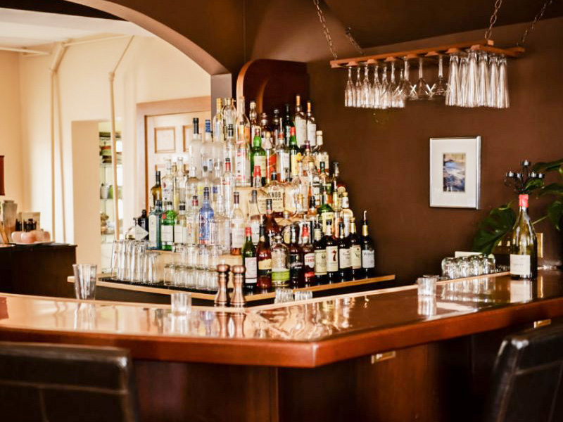 Step onto our inviting wrap-around veranda and enter a world of charm and elegance. The centerpiece of our main level is a grand fireplace that extends a warm welcome to all. Inside, the ambiance is enriched with dark chocolate and copper accents, creating a cozy atmosphere for up to 100 guests. Our copper-covered wrap-around bar and elegant tables further enhance the richness of the space featuring cozy brown leather seating.